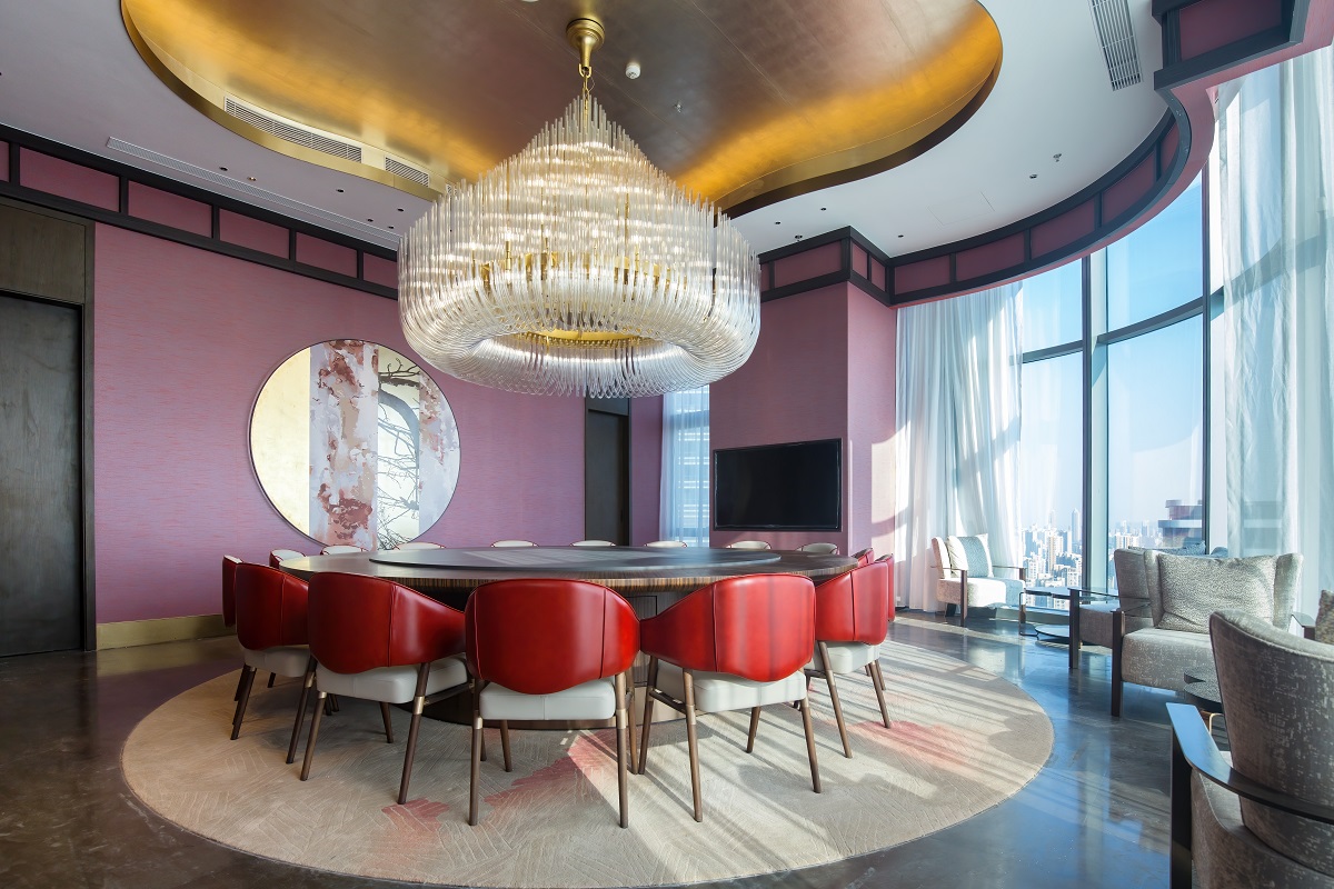 The 728-square-meter Grand Ballroom is located on the second floor of the hotel and can be divided into three multifunction rooms with a unique honeycomb ceiling design. The pre-function area features a dome design, leading to the banquet hall entrance with a ceramic altar.